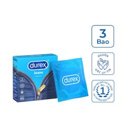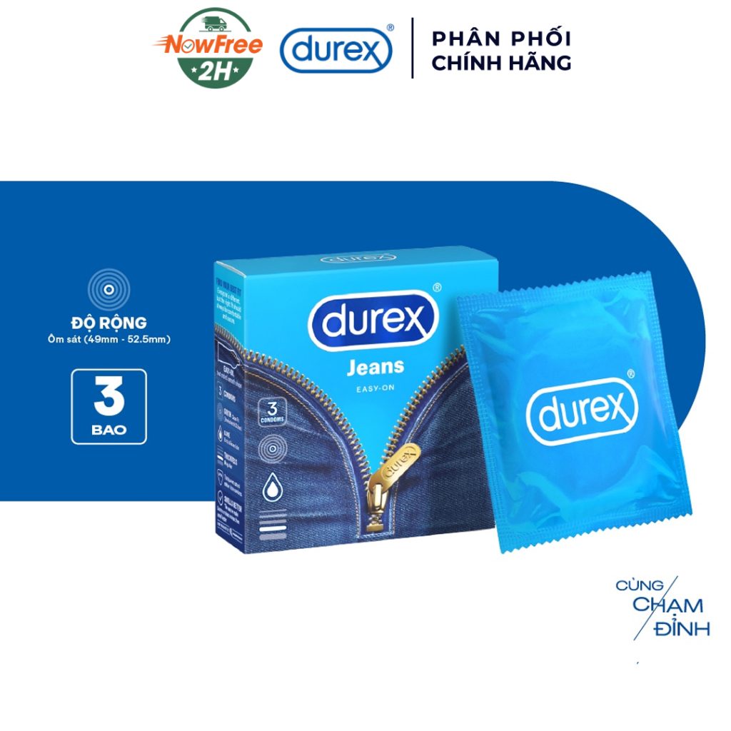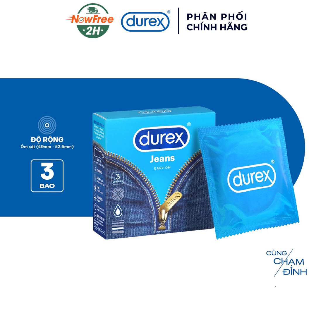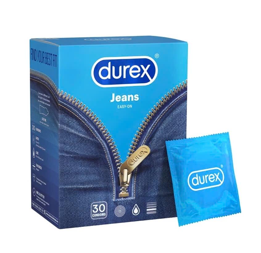 Durex Jeans được thiết kế với kiểu dáng easy-on hiện đại, với độ rộng 52.5mm ôm sát, vừa vặn, cùng nhiều gel bôi trơn mượt mà, giúp người dùng dễ mang vào khi sử dụng. Đặc biệt, Durex Jeans mang sự yên tâm khi sử dụng đem đến cho người dùng sự thăng hoa trong mọi cuộc “yêu”.
