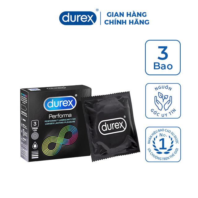 Durex Performa với thiết kế đặc biệt, có chứa Benzocaine 5%, gây tê nhẹ, giúp trì hoãn cực khoái và kéo dài thời gian cương cứng cho bạn, giúp bạn chủ động được thời gian, lần đầu lâu dài cho nửa kia ấn tượng khó phai.