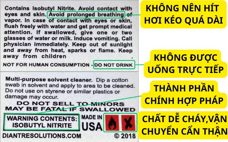 Poppers Mỹ chứa thành phần chính là Isobutyl Nitrite, hợp chất nổi tiếng với tính bay hơi cực mạnh và nhạy cảm với môi trường. Đây là lý do poppers dễ xuống cấp nếu bảo quản sai cách.